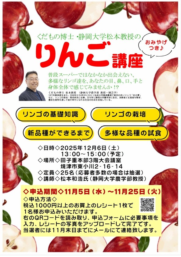 11月5日よりお申込開始!静岡大学 松本教授「りんご講座」申込開始いたします!
